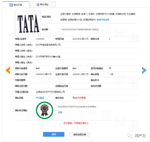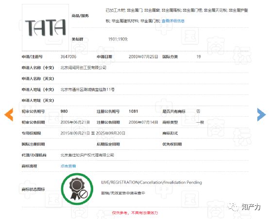 值得注意的是,苏州博士隆这件申请于2009年9月的“TATA”商标使用于金属门、五金器具等商品上,并不包括木门。