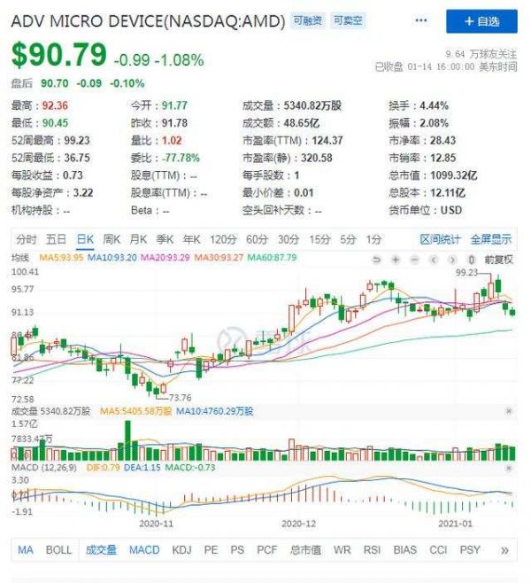 截至目前,英伟达股价为528.01美元,市值为3268.38亿美元;AMD股价为90.79美元,市值为1099.32亿美元。