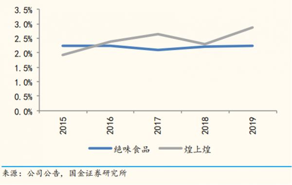 绝味食品与竞品煌上煌物流配送费占收入比重
