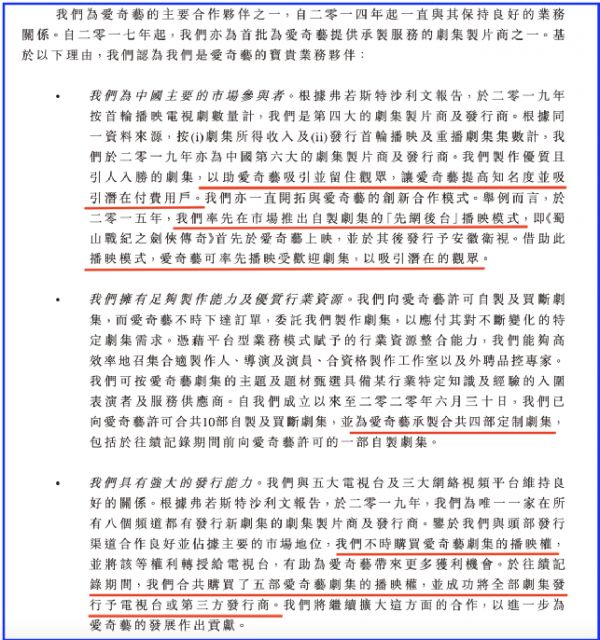 而稻草熊则在招股书中坦言,爱奇艺是领先的网络视频平台,爱奇艺的广大观众群能推动其优质剧集步向成功。
