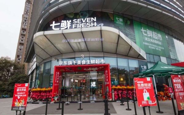 紧随其后,京东七鲜也开始提速,节奏紧凑,三店同开。