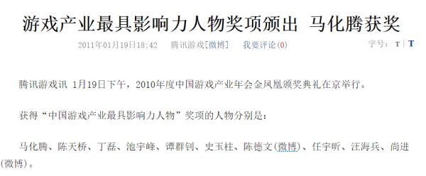 就在小公司们搭起草台班子的当年,活跃在游戏业界前台的,还是一些鼎鼎大名的人物。据2011年初的一份权威评选显示,2010年度游戏产业“最具影响力人物”榜单上,包括了陈天桥、马化腾、丁磊、史玉柱以及陈德文这些名字。