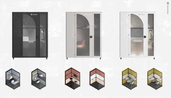 新产品是一款专门针对移动办公场景所设计的隔音办公舱,占地面积为3.5平米左右,配有扫码开门按时收费系统,内部配置有几套不同的模式可选,可以应用单人专注办公,也可以容纳4人进行临时会议。内部配置视频会议系统,无限网络和沙发桌椅等设施。