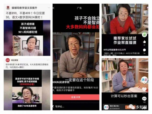 淘宝搜“妈妈服装”、“爸爸服装”,不同的商家,不同的服装类型可能看到的是同一个“模特”。这两年,随着教育投放增多,在抖音上可以看到类似的现象:同一个“资历深厚的老师”同时“推荐了”四家在线大班课和一家在线大语文。
