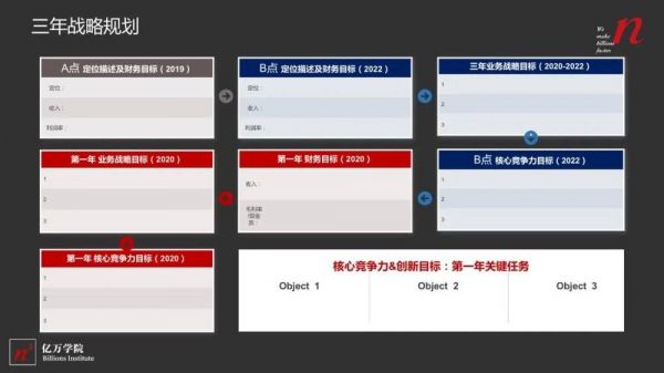 我们公司做战略规划的时候,用了一个AB点模型。知道了公司三年后的定位、三年后的财务目标、业务战略目标,梳理清楚你的核心竞争力目标,然后再倒推到现在,今年和核心竞争力相关的几个关键点就出来了。