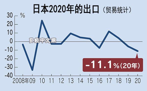 日本2020年整体出口减11.1%,对中国增2.7%