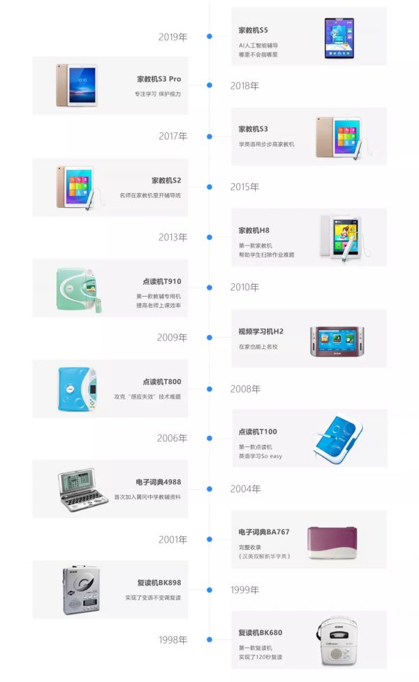 这里必须要提的是步步高,段永平从小霸王出走创建步步高,虽然二三十年过去了,但步步高仍然活跃在教育硬件的舞台上。借助庞大且成熟的线下销售网络,步步高成功引爆了复读机、点读机等教育硬件产品。截至目前,步步高在全国布局仍超过18000个终端销售网点,在各省区主要城市设有超过400家服务体验店,服务覆盖中国大陆各级城乡。