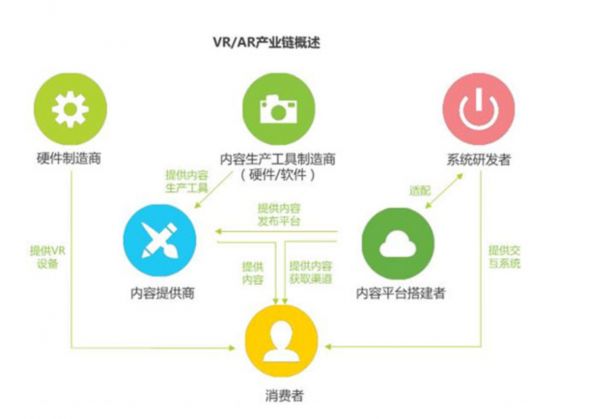 从2014年左右开始的国内AR、 VR创业潮至今,国内目前已经形成了包括硬件提供商、内容工具制造商、系统研发者、内容提供商等一整套完整的产业体系,而国内企业大部分处于内容提供商及平台搭建者的角色。