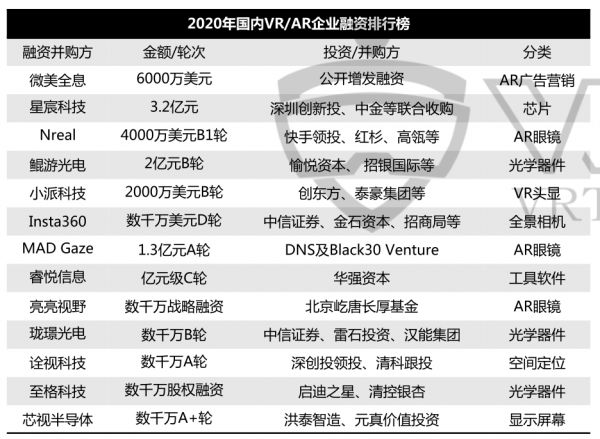 图片来源:《2020年全球VRAR行业融资报告》——VR陀螺