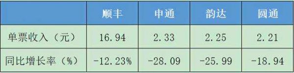但值得注意的是,无论是优秀的顺丰还是通达系三家,其单票收入皆大幅下滑。