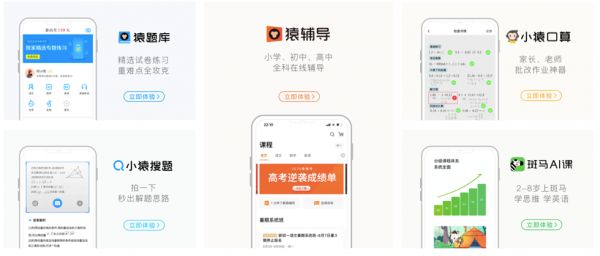 以猿辅导为例,在 2012 年创立后不断试错,快速迭代,先后推出了粉笔网、猿题库、小猿搜题、猿辅导、斑马英语、猿编程和小猿口算等产品。如今,多元化的产品矩阵覆盖到了学生学习的各个方面,形成从流量获取到用户留存的闭环,同时,多层次的产品也共同铸就了“猿辅导”这一逐渐被人们熟知的品牌。