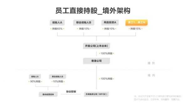虽然VIE架构或红筹架构看起来很复杂,但是最上层的逻辑与境内架构是一致的,即员工和创始人、投资机构一样,都是公司的直接股东,登记在股东名册里。