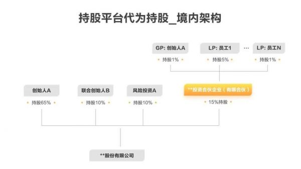 从实用角度来讲,对于境内架构的公司,最好的形式是有限合伙。创始人作为GP(一般合伙人),员工作为LP(有限合伙人),由GP作为执行事务合伙人,LP不享有投票权、管理权,仅享有利润分配的权利。