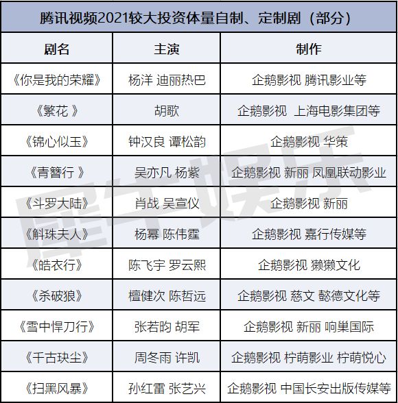 爱奇艺创始人、CEO龚宇在2020爱奇艺iJOY悦享会上表示,内容原创将是2021年爱奇艺的重点工作之一;企鹅影视CEO孙忠怀在2021V视界大会上宣布,接下来的三年,拟投入1000亿内容开发成本。