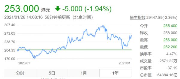 截止1月26日收盘,阿里巴巴股价为253港元,较二次上市发行价176港元涨幅43.75%;