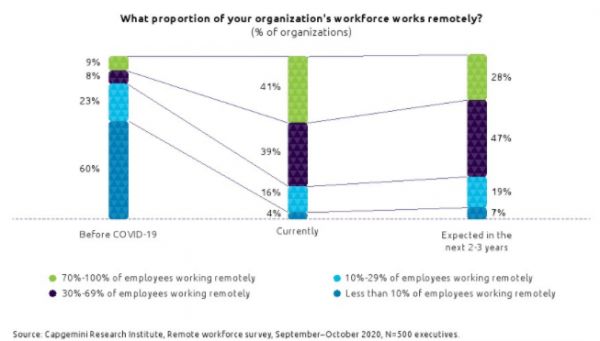 最近,Capgemini咨询公司发布了新报告“远程工作—从远程到混合”。报告里面说明了混合模式是在“在家工作“和“办公室工作“模式之间取得的一种优化平衡。