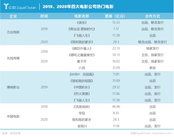 “以往一部爆火的电影获得的收益,对于影视公司的利润改善是非常明显的。”投资者方方(化名)告诉亿欧EqualOcean。