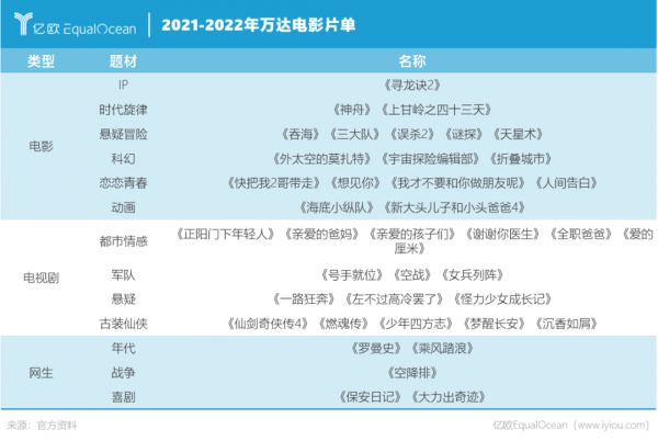 从2021-2022年的片单来看,万达电影已开始尝试开发多元化类型影片。