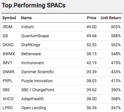 根据SPAC analytics数据显示,表现最好的10只SPAC录得的收益均超过300%,其中收益最高的公司是Iridium,投资回报达到805%,可见这确实是一个非常有想象力的投资标的。