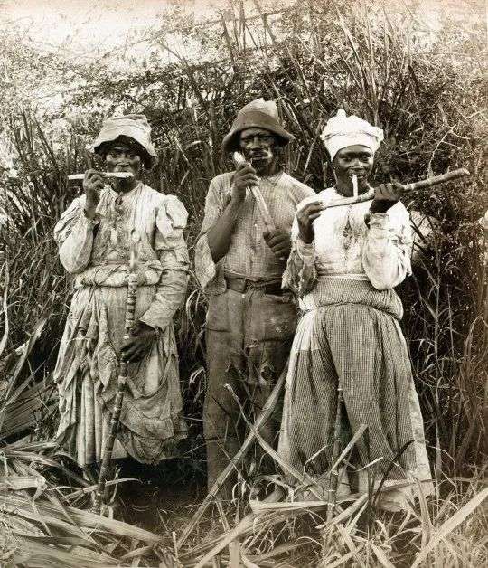摄于牙买加,1890 年代。最早的甘蔗种植出现在亚洲,当亚洲人在品尝蔗糖的甘甜时,欧洲人只能从蜂蜜中收获类似的感觉。