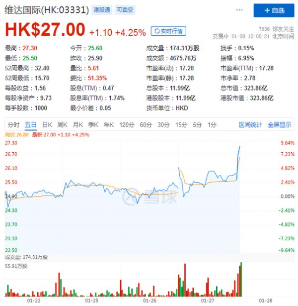 作为国内老牌生活用纸巨头维达国际于1月27日对外发布了截至2020年12月31日的全年业绩报告。财报显示,截至2020年12月31日,维达国际营收、净利润均实现了同比增长。但财报公布后,当日港股开盘,维达国际股价迅速下滑,随后又有回升,当日报收25.9港元,涨2.57%。截至发稿,报27港元,涨4.25%。