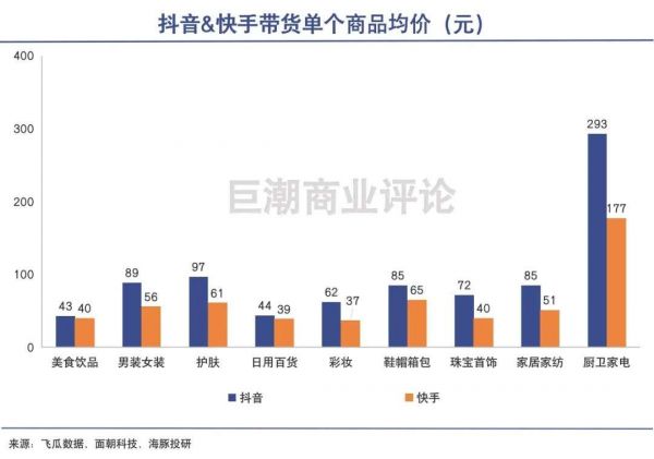 此外,由于用户以下沉市场为主,快手平台电商的客单价远低于抖音,其平台上存在大量的农产品与工厂货、白牌货以及品牌库存等。