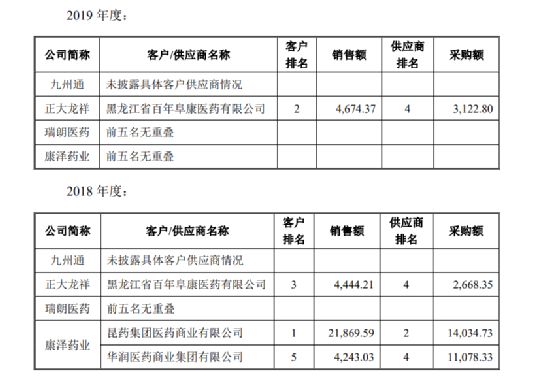 在药易购招股书中,其2018年和2019年最大的供应商九州通(SH:600998),实则就是一家医药经销商。