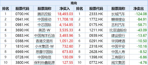 南向资金一个月净买入、净卖出情况