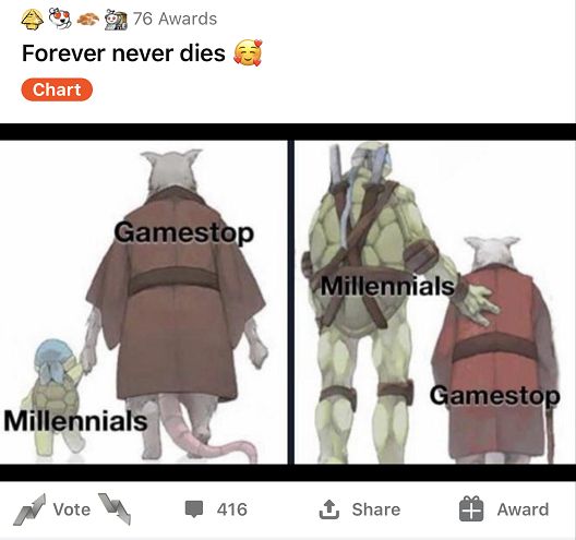 这事儿之后,在互联网上,聚集于名为Wallstreetbets轮胎的股民决定联合起来,一起买GME的股票,使股价升高,让空头赔钱。