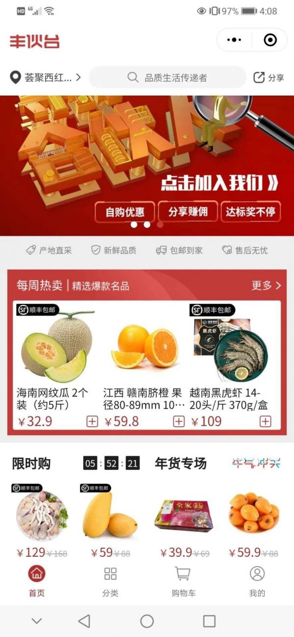 而顺丰也亦然,介绍称,“丰伙台”依托顺丰遍布全国的冷链物流体系和源头直采的供应链能力,为社区店提供生鲜/快消品B2B采销、社区营销工具、快递共配等赋能服务,为消费者提供源头直采的安全、新鲜、优质产品。