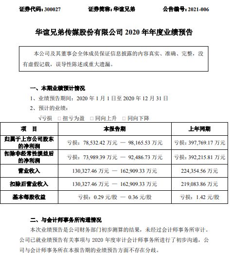 类似情况的还有华谊。2018年、2019年华谊兄弟分别亏损10.93亿元、2019年亏损39.6亿元,按照原退市规则2020年继续亏损的话就会直接退市,因此华谊兄弟董事长王中军在2020年初给公司的硬性KPI是盈利。