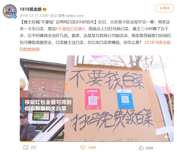 想当年,支付宝拉新用户拉到最后只剩下老人,向他们推广很不容易,但是老人们又占着手机号和身份证号。所以线下小店就用免费送白菜等办法“诱惑”老人把手机交给他们开通,赚点推广费。