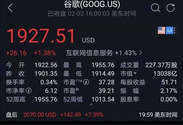 亮眼业绩也推动股价的上涨,股价盘后涨7%,股价突破2000美元大关,创历史新高。