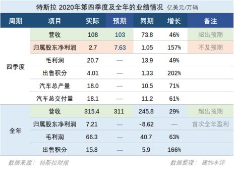 我说一个更大的问题。1月28日,特斯拉公布了2020年的财报,总收入为315.36亿美元,总毛利66.3亿美元,净利润为7.21亿美元。首次实现盈利了。