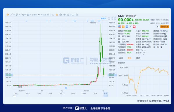 1月28日,GME一度涨至480美元,眼看直奔500美元而去,但万万没想到,这竟是散户们最后的荣光。当天,GME收盘价不足200美元。第二天,散户们献上最后一舞,GME盘中再次突破400美元,以325美元收盘。