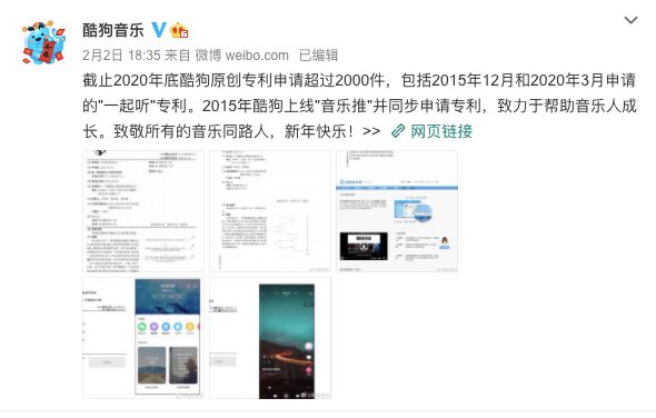 而酷狗音乐并没有直接回应云音乐,而是表示截止2020年底酷狗原创专利申请超过2000件,包括2015年12月和2020年3月申请的“一起听”专利,2015年酷狗上线“音乐推”并同步申请专利。而酷狗音乐副总裁谢欢在朋友圈疑似回应,“原来我2006年做的QQ一起听功能,竟然有如此深远的战略意义”。