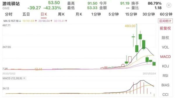 北京时间2月5日美股收盘,散户抱团股游戏驿站(GME.US)暴跌42%,报收53.50美元/股。