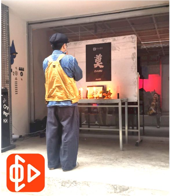 奇怪的现场没有多少悲伤,更多的是沉默和尴尬。在OK Center的门口,摆放着虾米音乐的祭奠台。到场的人们自发走到虾米的祭奠台前上一柱香,然后对着“奠”字下的“damn”深深三鞠躬。