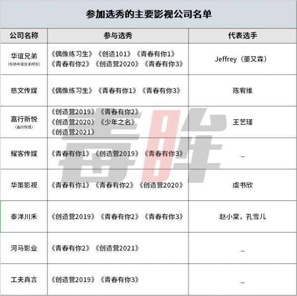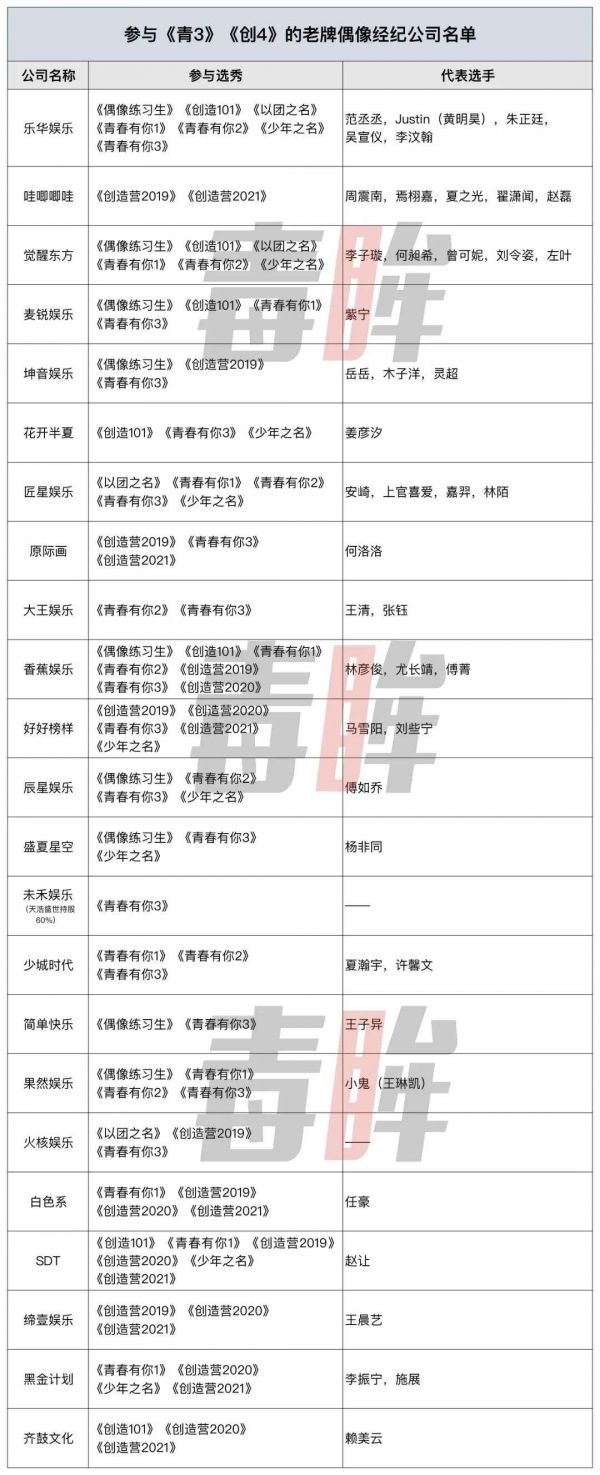 所以,在现行的偶像经纪体系中,传统经纪模式的影视公司仍然是较大的训练生出口,今年的《青3》《创4》仍然有不少传统经纪公司和明星公司入场。