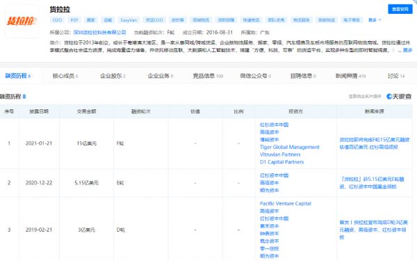 无独有偶,同样扎根于同城货运的货拉拉也在今年1月21日拿到了同样的15亿美元融资,并一举实现估值近百亿美元的跨越。而另一同城货运头部企业满帮集团也于年前的11月24日拿到了17亿美元的战略融资。