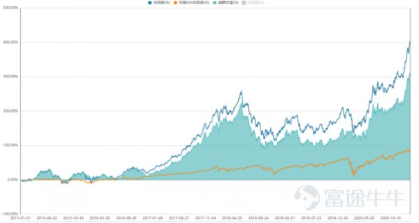 2015年1月1日以来中概股等权重指数上涨403.67%,跑赢标普500指数,相对回报率为314.89%。