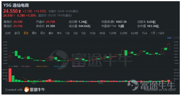 (3)逸仙电商(YSG.US)涨超14%,股价触及上市以来新高