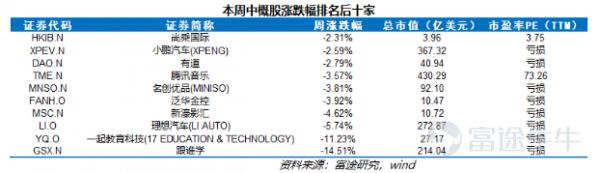 1、一周中概股市场表现回顾