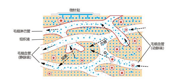 在所有的透皮给药手段中,可溶解微针是一种较为受欢迎的方式,它透过皮肤的角质层到达表皮,吸取表皮内的组织液后溶解释放,并通过淋巴循环与血液循环的关联,将药物成分送往病灶部位进行治疗,是一种全新的给药技术和给药方式,具有安全、无痛、方便、定量释放的优势。