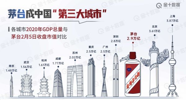 不知不觉中,茅台总市值已成为中国第三城,实现了众多城市「拳打深圳脚踹广州」的梦想,当然,这种比较只是一种调侃,并不科学。
