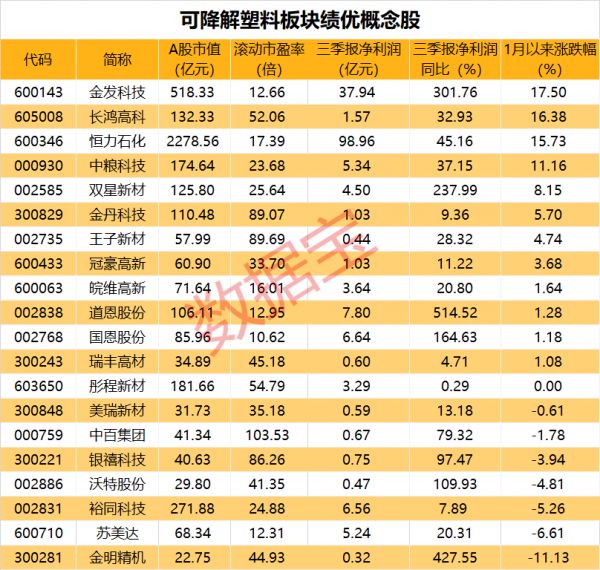 证券市场可降解塑料板块内,个股数量有40只左右。剔除由于上季度业绩不佳的股票以外,还剩下20只股。