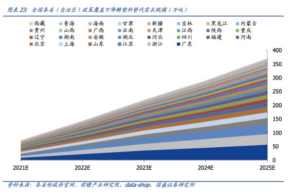 根据中信证券预测2025年我国可降解塑料的需求量将达到213万吨,远期替代规模500万吨,市场空间巨大。