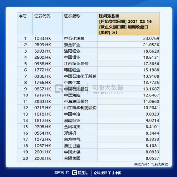 油气能源:全球经济复苏+美国超级寒潮+沙特突然宣布石油大规模减仓,一起刺激国际油气能源板块大涨,原油现在重回60美元大关并持续回升。美股能源板块已大涨,港股三桶油集体飙涨10%带飞一众能源股,并且短期油价上涨趋势确定性高,国内的能源股肯定不会放过炒作。