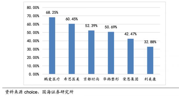 2019年大陆地区医美机构的毛利率对比