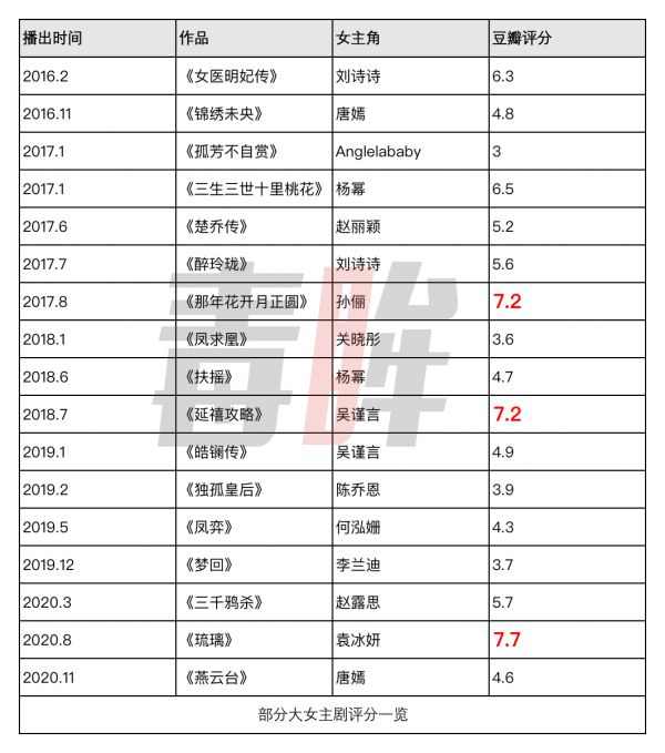 因此,当视频网站进化到自制阶段,大IP也就完成了自己的历史使命。而作为IP战略的里排头兵,大女主们自然也该乖巧退下。毕竟,那些年里,大女主们只顾着谈恋爱和靠男人打天下,着实没给观众留下什么——除了几百亿的流量水分。